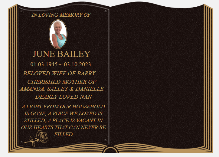 Our plaques offer a timeless and refined way to honour your loved ones. Crafted to blend harmoniously with any setting, these plaques provide a dignified and understated tribute. Available in a variety of shapes, sizes, and finishes, each plaque can be customized to reflect the unique personality and life of your loved one. Personalise your plaque with engravings, inscriptions, and even photographs, creating a heartfelt and enduring memorial that will last for generations.